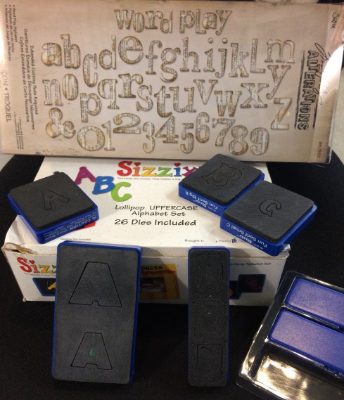 Sizzix has a number Alphabet and Number dies of all types. Since we are talking fabric here my answer will always be stick to the Sizzix Steel Rule lines of dies marketed as Originals or Bigz as they provide the best frustration free die cutting possible. With your Sizzix BigShot/vintage/BigKick/Vagabond/BigShotPlus the Alphabet and Number dies currently available through Sizzix are: *Block Talk, *Word Play, Fresh Blossoms and Vintage Market *note some of these have the font all on one XL die. Most of the above cut letters 1-2″. For larger letters measuring 2 3/8″ there is a Stephanie Ackerman four die set. Don’t overlook the retired Originals dies (measuring between 5/8″ to 1 1/4″ – FunSerif and Lollipop. And…there are even retired Originals AlphaBars in several styles. Google Sizzix Alphabet and begin your hunt for the style you are after! I look forward to seeing what you cutout and create!
